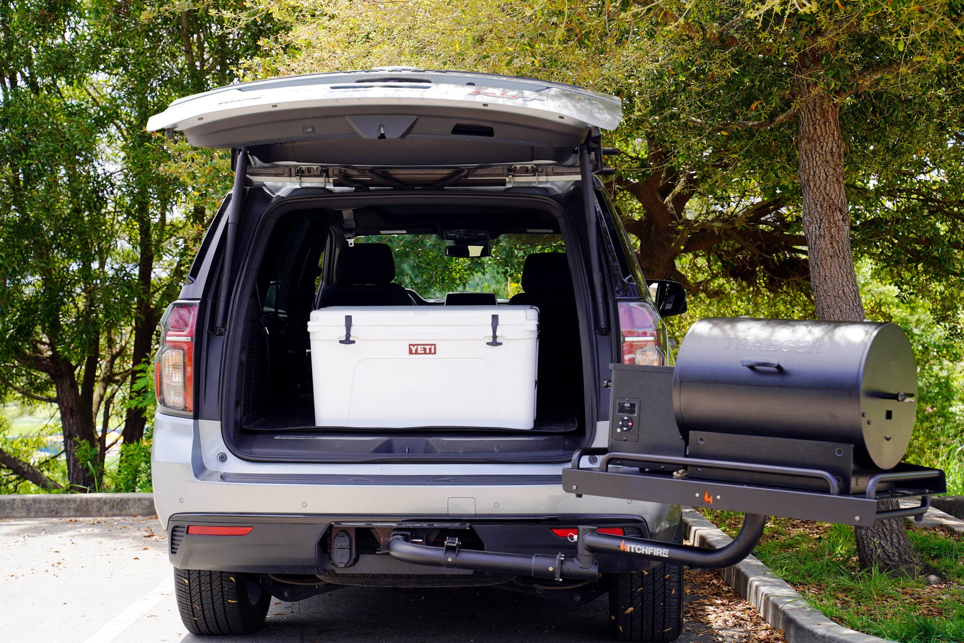 No need to unload your Ledge to access the back of your vehicle. The proprietary HitchFire swing arm allows for easy access to the trunk or tailgate. Cook on a stovetop, setup your laptop, or fire up a smoker, the large flat surface of the Ledge offers limitless possibilities.